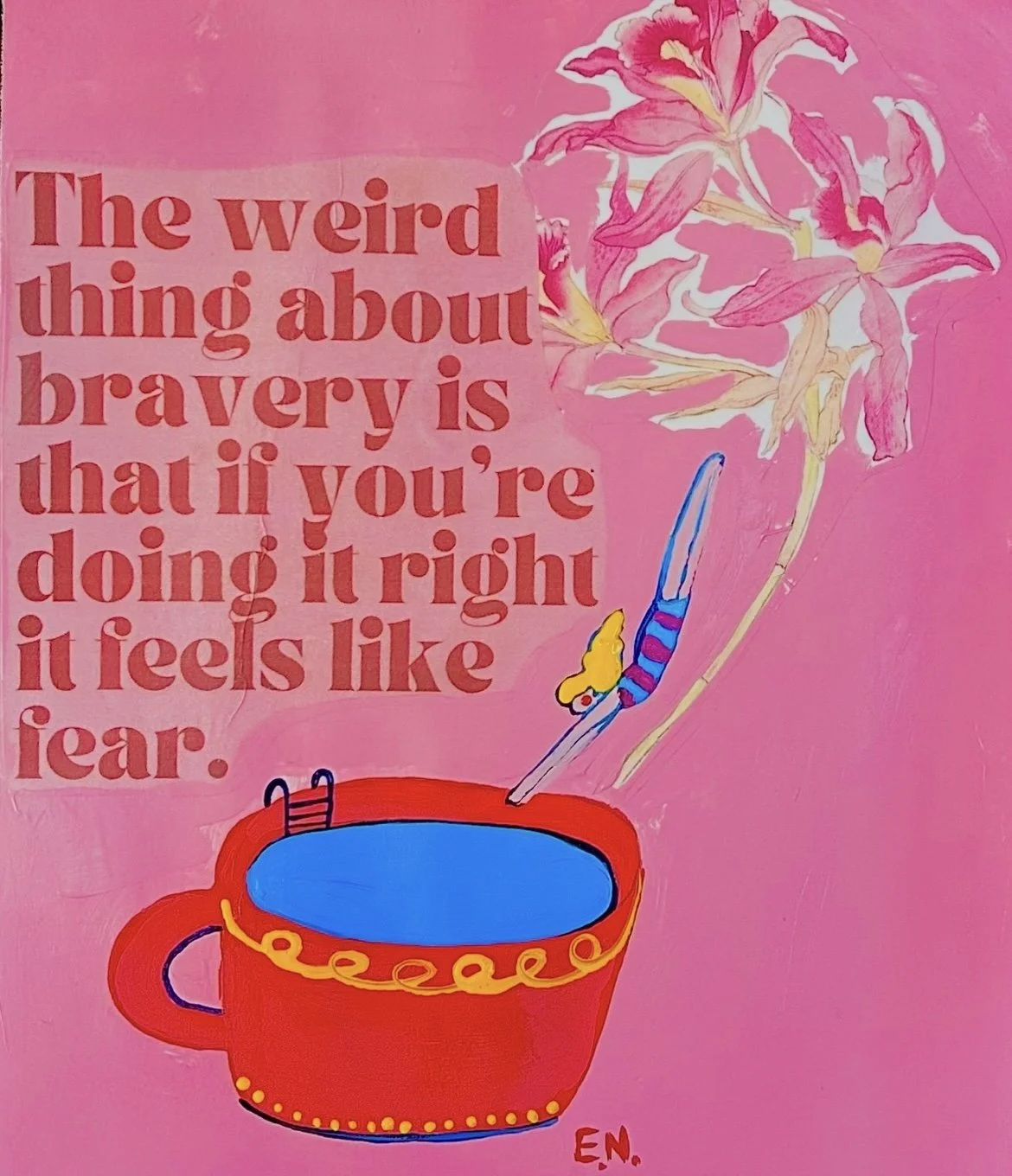 My work spans advertising agency copywriting by day, and, by night, vivid mixed-media paintings, writing (ranging from pointed satire to deeply personal memoir), and performance-based comedy (both solo in the form of stand-up comedy and team-based in the form of my beloved college sketch comedy troupe). The through-line across my work has always been my desire to tell stories that mean something. A story told well not only relies on a keen understanding of audience and narrative but also the ability to step inside a world that may not be familiar to one’s self or one’s own. And, though I cultivate my wide range of creative work with drive and dedicated passion, in truth, these pieces are nothing more than different mediums from which to articulate a well-told story.