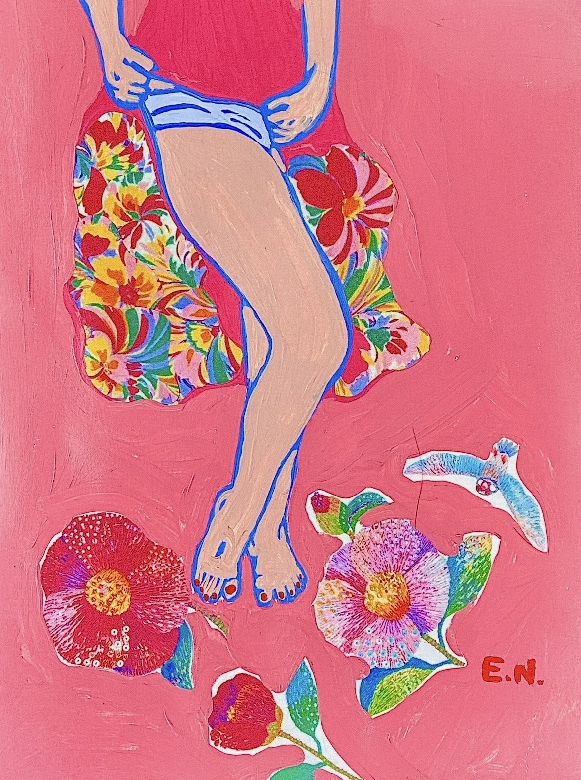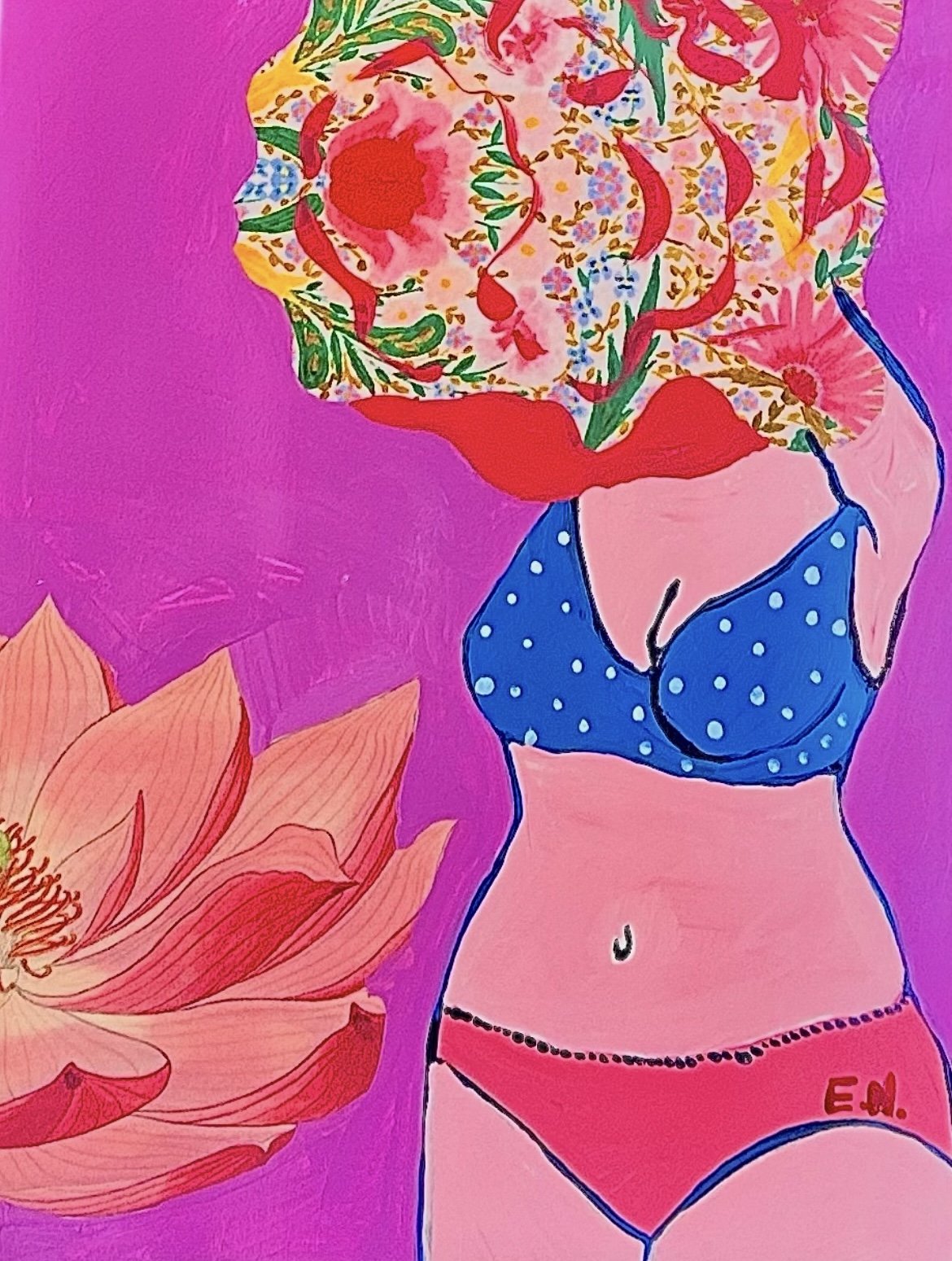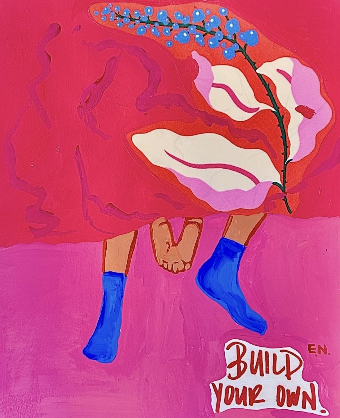 I’ve been making art since I was little: tiny drawings of wasp-waisted women that became collectors items amongst my mom’s friends, Barbie clothes from bits of fabric and paper out of the recycling bin, doodles on math notebooks in middle school, and, as I got older, more serious paintings and series on paper and on canvas. The following thousand-or-so paintings are from a body of work I’ve built in the past few years. I have created an illustration or painting every single day, without fail, since I was a senior in high school. To this very day, if I miss a day, I make it up the next day with two pieces of art. These are just a handful, really.