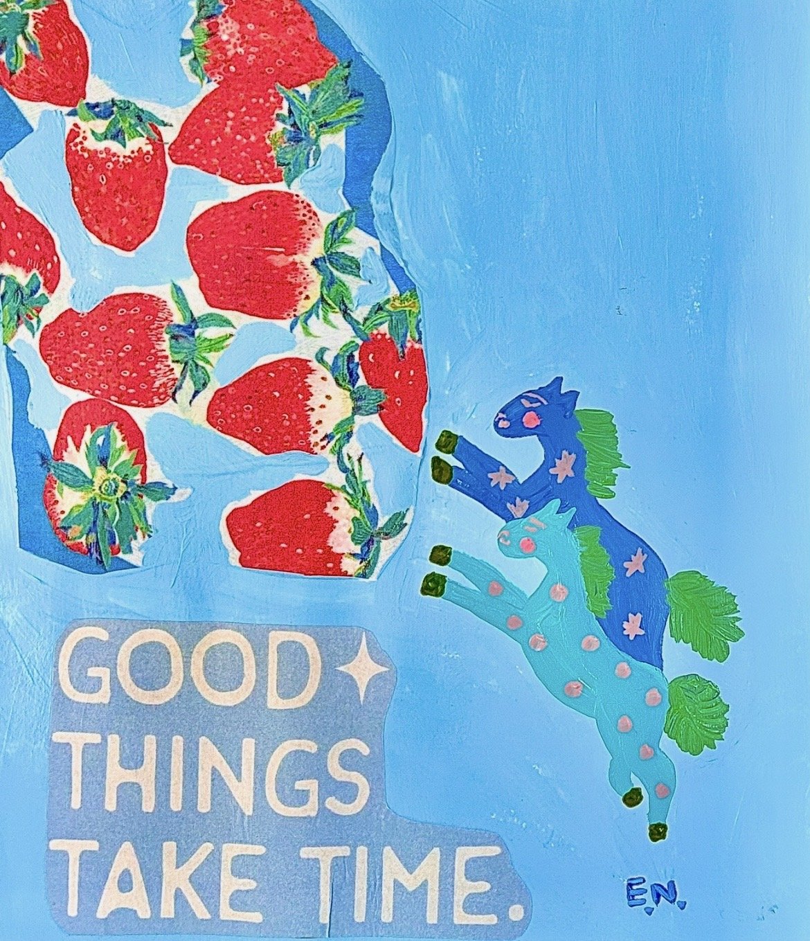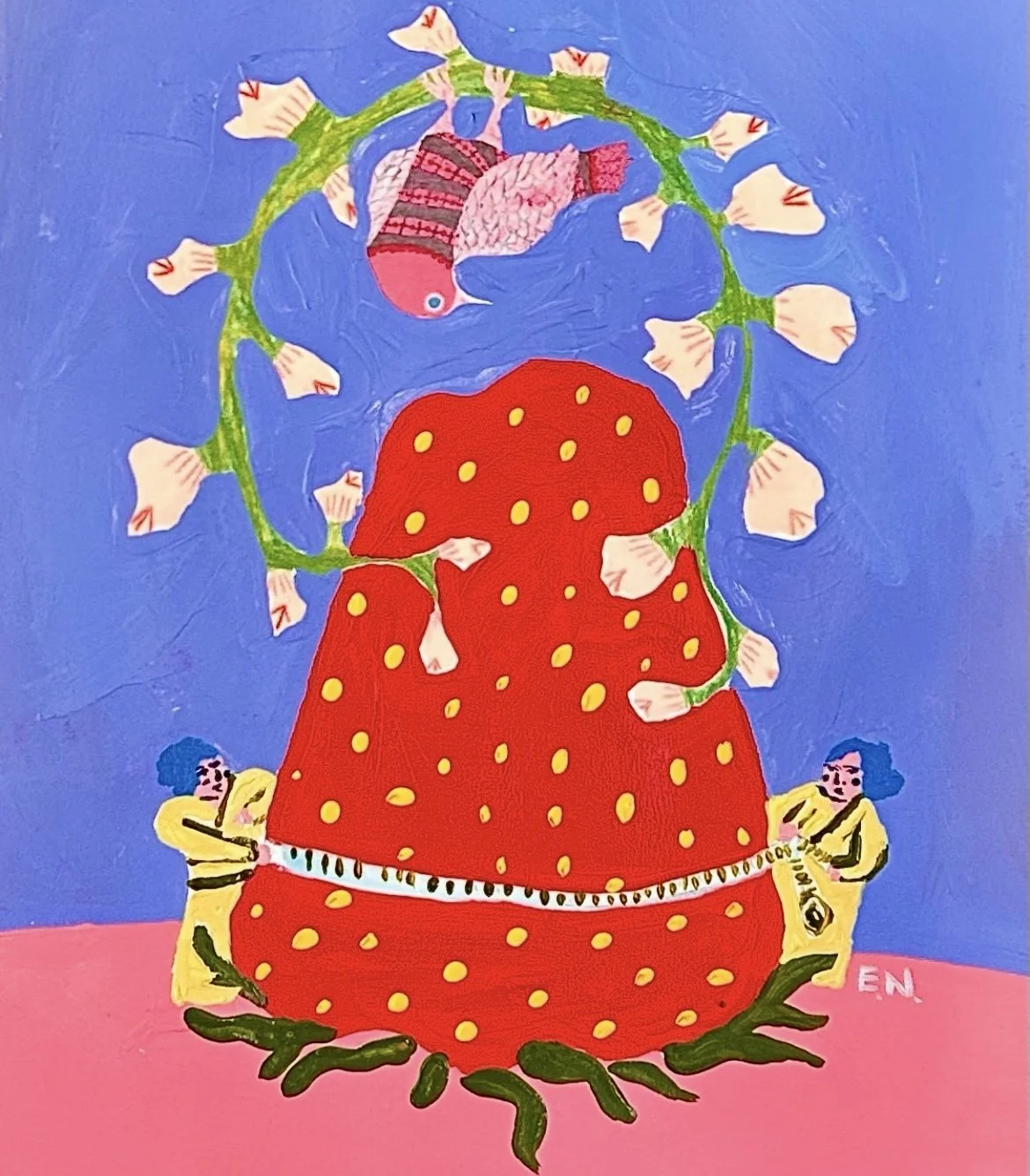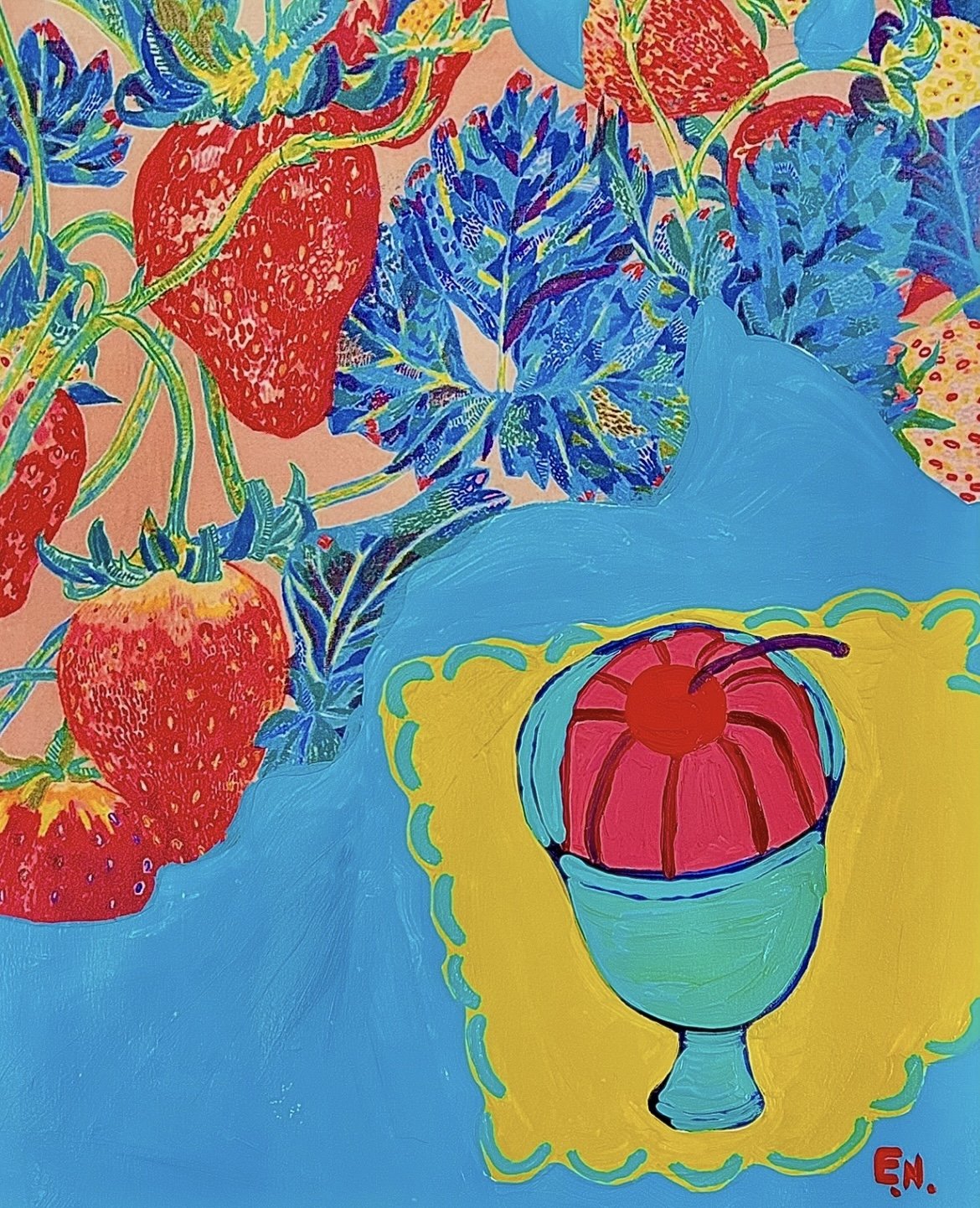 I’ve been making art since I was little: tiny drawings of wasp-waisted women that became collectors items amongst my mom’s friends, Barbie clothes from bits of fabric and paper out of the recycling bin, doodles on math notebooks in middle school, and, as I got older, more serious paintings and series on paper and on canvas. The following thousand-or-so paintings are from a body of work I’ve built in the past few years. I have created an illustration or painting every single day, without fail, since I was a senior in high school. To this very day, if I miss a day, I make it up the next day with two pieces of art. These are just a handful, really.